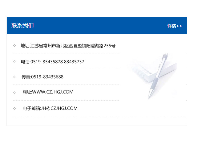 傳真:0519-83435688    郵編:213135    網址:WWW.czjhgj_com.nanshanhjf.com    電子郵箱:JH@czjhgj_com.nanshanhjf.com